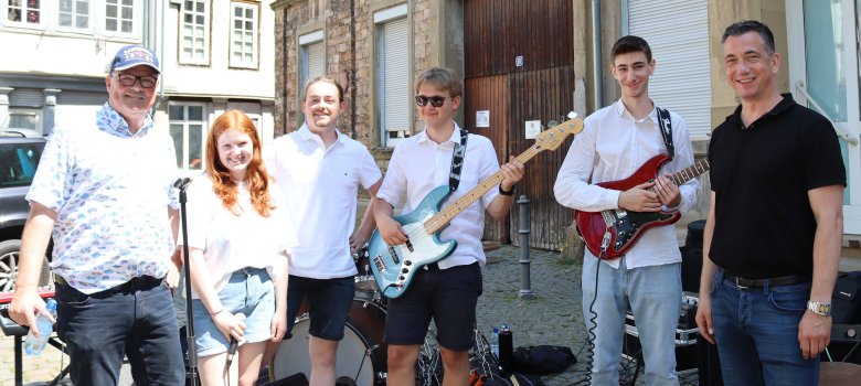 Unmengen von Zigarettenkippen wurden eingesammelt. Der OB sprach einen Ladenbesitzer an, weil direkt vor dessem Geschäft massenhaft die Stummel lagen. Zum Abschluss trafen sich alle Sammler*innen auf dem Eiermarkt, wo es nicht nur erfrischende Getränke und einen Imbiss gab. „Keiner schert sich n Dreck“ ist eine Zeile aus dem Song, den die Band „Quintonics“, fünf junge Musiker*innen von der Musikschule Mittlere Nahe, für die Kampagne „Botschafter für eine saubere Stadt“ komponiert und getextet hat. Für die Premiere dieses flott-rockigen Kampagnen-Liedes gab es viel Beifall. Das 30-minütige Konzert lockte auch eine Reihe von Schau- und Hörlustigen an.