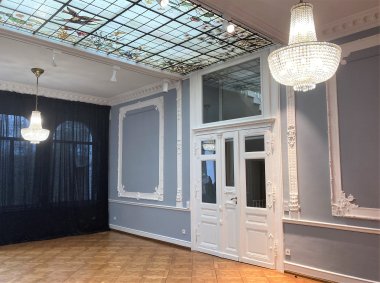 Eine weitere Neuerung stellt die Renovierung im Anbau des Museums dar. Die beiden an das Jagdzimmer angrenzenden Räume mit Stuckverzierung wurden erstmalig überhaupt restauriert und durch eine Bad Kreuznacher Fachfirma in einen historisch korrekten Zustand um 1900 gebracht. „Der matte, grau-blaue Anstrich und der weiße Stuck bringt das historische Ambiente voll zur Geltung. Die Räume können nun optimal für Sonderausstellungen bespielt werden und stellen insgesamt eine Aufwertung des Museums dar“, freut sich van Bel. Dafür sorgt auch die neue LED-Beleuchtung, welche die gezeigte Kunst bestmöglich präsentiert. Schon ab 2. April wird es soweit sein: Dann ist in den neugestalteten Räumen die Ausstellung „Im Namen des Vaters? Eine künstlerische Auseinandersetzung zum Missbrauch in der Kirche“ mit Gemälden von Kunstpreisträger Rinaldo Greco zu sehen.