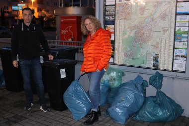Großes Foto: Bei ihrer Innenstadttour wurde die AWB-Müllabfuhr von Bettina Dickes und Emanuel Letz begleitet.
