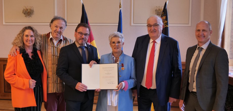 Gruppenfoto: Bei der Feierstunde bei der SGD Nord waren Familie und Freunde von Anna Dhonau sowie kommunale Vertreter anwesend. Für die Stadt Bad Kreuznach nahm Beigeordneter Markus Schlosser (rechts) teil.