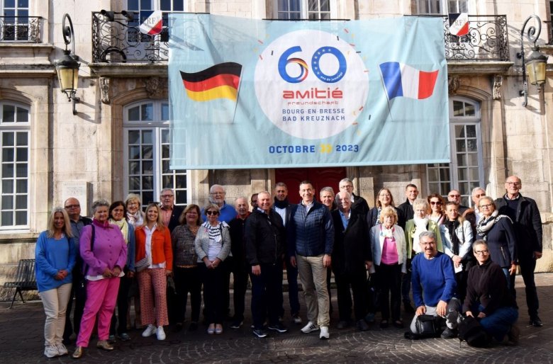 Am Donnerstag waren die vier Busse aus Bad Kreuznach mit rund 250 Fahrgästen pünktlich um 17 Uhr am Kloster Brou angekommen. Dort wurden sie von einer großen Menge Bourger herzlich begrüßt. Oberbürgermeister Emanuel Letz, Bürgermeister Thomas Blechschmidt und die Geschäftsleitung der Verwaltung, Nathalie Herberger, führten die offizielle Delegation bestehend aus Stadtrats- und Ausschussmitgliedern an.