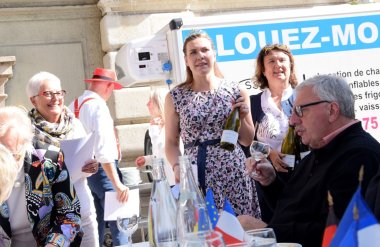 Jumelage pur auch bei den Gesprächen. Ein älterer Herr, der Deutsch in der Schule gelernt hatte, rezitierte das komplette Heine-Gedicht zur Lorelei „Ich weiß nicht was soll es bedeuten?“. Das „Bad Kreuznacher Winzernest“ (Püree, Sauerkraut, Fleischklöße mit Zwiebelsauce und Trauben garniert) kam sehr gut an, auch beim Essen der offiziellen Delegation auf dem Markt, zu dem der OB eingeladen hatte. Dazu gab es Finkenauer-Wein, der von Ellen Finkenauer und Naheweinprinzessin Tina Anheuser ausgeschenkt wurde. Die Familie Finkenauer war wie Vinella ebenfalls mit einem Stand vertreten. Andreas Rapp machte den Franzosen seine „Küsse für Gaumen“, Saucen, Marmelade, Säfte, schmackhaft.