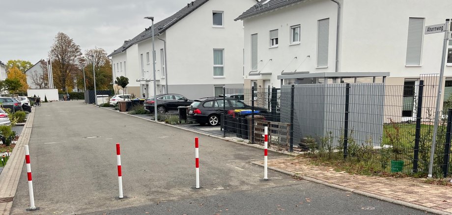 Foto: Die Durchfahrt ist mit Pollern gesperrt, der Ahornweg jetzt eine Sackgasse.