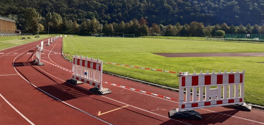 Um ihrer Verkehrssicherungspflicht nachzukommen, hat die Stadt den Bereich mit Absperrschranken und -bändern abgetrennt. Die übrigen Bahnen können weiter durch die Sportlerinnen und Sportler genutzt werden. Die Problemstellen werden in Kürze mit wenig Aufwand repariert.