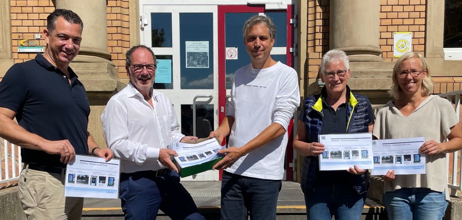 Foto (v.l.): OB Emanuel Letz, Klaus-Dieter Dreesbach, Moritz Gentz (Vorsitzender des Fördervereins), Yasmin Röhr (Rektorin), Judith Krammes (Konrektorin); Text und Foto: Unternehmensgruppe Kreuznacher Stadtwerke
