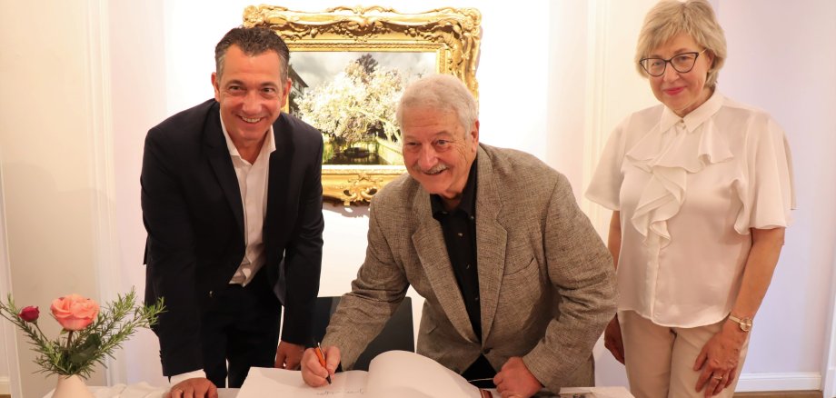 „Für unsere Stadt stellt dieser Besuch und die Leitung des Jubiläumskonzerts eine große Ehre und Auszeichnung dar. Über diesen kulturellen Austausch freuen wir uns sehr. Ich danke Herrn Dr. Griffith herzlich, dass er diese weite Reise auf sich genommen hat, um uns mit seiner musikalischen Expertise zu bereichern“, sagte Oberbürgermeister Letz in seiner Begrüßungsrede. Als einer der ersten prominenten Persönlichkeiten, die in Bad Kreuznach weilten, trug sich der US-Dirigent im Anschluss in das neue Gästebuch der Stadt ein.