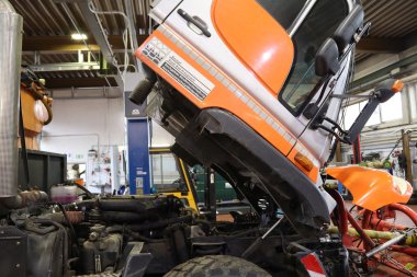 In Zeiten des Winterdienstes hat die Werkstatt ab 4 Uhr morgens Bereitschaft. Bleibt ein Streuwagen liegen, muss der Schaden vor Ort behoben werden, z.B. der Besen wieder flottgemacht werden. Und wenn nicht möglich, muss schnellstens für Ersatz gesorgt werden. Die Winterdienst-Kollegen werden auch dahingehend entlastet, dass die Behälter mit Sole und Salz von den Werkstatt-Leuten befüllt werden.