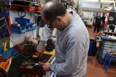 Jeden Tag müssen die Werkstatt-Arbeiter ausrücken, um schnell vor Ort und Stelle zu sein, dort wo etwas streikt oder kaputtgegangen ist. Da ist es auch schon vorgekommen, dass kurz vor einer Beerdigung die Sargwinde wieder in Schwung gebracht werden musste. Oder die Klappe zu einem der unterirdischen Stromversorgungskasten im Kornmarkt klemmt und ebenso wieder funktionsfähig gemacht wird wie die Rasenlochmaschine für die Befüllung und Belüftung des Spielfeldes mit Sand im Moebusstadion.