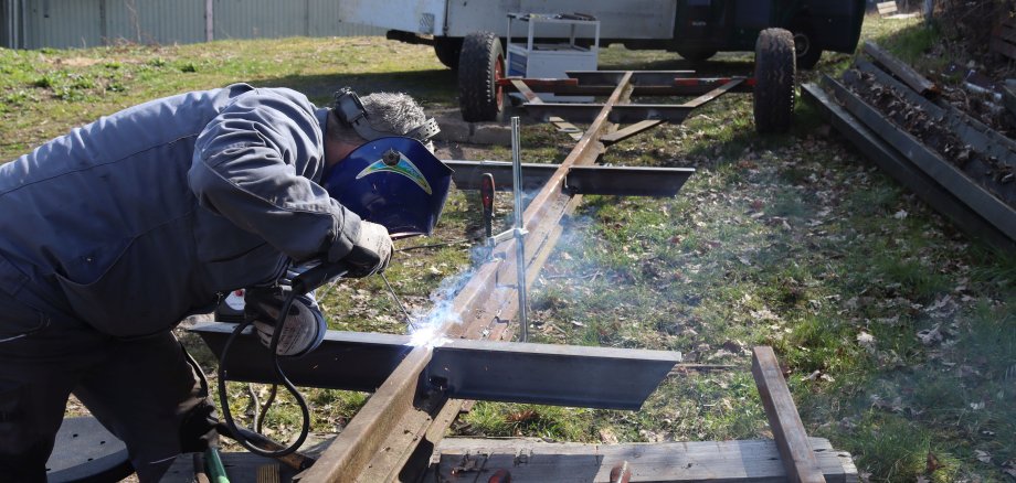 Einen Auftrag der besonderen Art wurde nun auf dem Gelände des ehemaligen Bauhofes der VG BME in Ebernburg erledigt. Dorthin wurde der alte Anhänger gebracht, der für den Transport der Huttentalfähre wiederverwendet werden kann, speziell für das Rein -und Rausholen des Kahns in die und aus der Nahe. In der Bauhofwerkstatt wurde ein 13 Meter langer Holzbalken (Fichte/Tanne) in zwei gleichlange Teile geschnitten. Auf diese Balken wird der Kahn geschoben. Die Traversen und Eisen als Ablage für die Balken wurden dann vor Ort an die Mittelschiene des Anhängers geschweißt. Die Fähre konnte somit zur Saisoneröffnung zu Wasser gelassen werden.