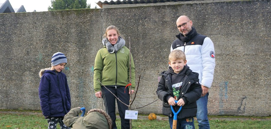 Anfang Dezember war es dann endlich soweit: der Apfelbaum wurde gepflanzt. Die Kinder der Kita waren aufgeregt und tatkräftig dabei. Sie freuten sich über die Möglichkeit zur Mitwirkung und den neuen Baum auf dem Kitagelände. Gemeinsam mit Hannah Babel, Projektmitarbeiterin der SDW, pflanzten die Kinder mit großer Freude ihren Apfelbaum auf dem Gelände der Kita. Stefan Reithofer, stellvertretender Amtsleiter und Abteilungsleiter Verwaltung beim städtischen Amt für Kinder und Jugend, vertrat Oberbürgermeister Emanuel Letz bei der Pflanzung und freute sich über die Aktion und die Begeisterung der Kleinen am Thema.