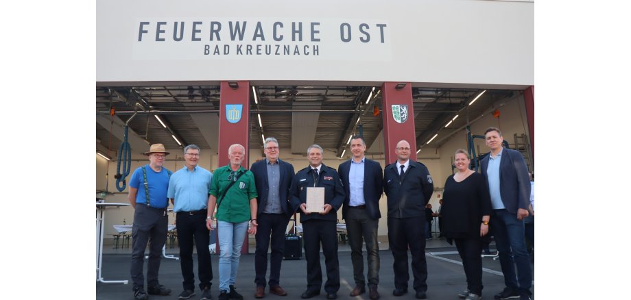 Foto ganz oben (v.l.): Volker Hertel (Ortsvorsteher Bosenheim), Bernd Burghardt (Ortsvorsteher Ippesheim), Dirk Gaul-Roßkopf (Ortsvorsteher Planig), Heiko Zeltsmann (Architektenbüro Orben & Zeltsmann), Peter Steinbrecher (Löschbezirksführer Löschbezirk Ost), OB Emanuel Letz, Michael Seibel (Wehrleiter), Bianka Romeike (Bauleitung), Eduard Schuckmann (Bauamtsleiter).