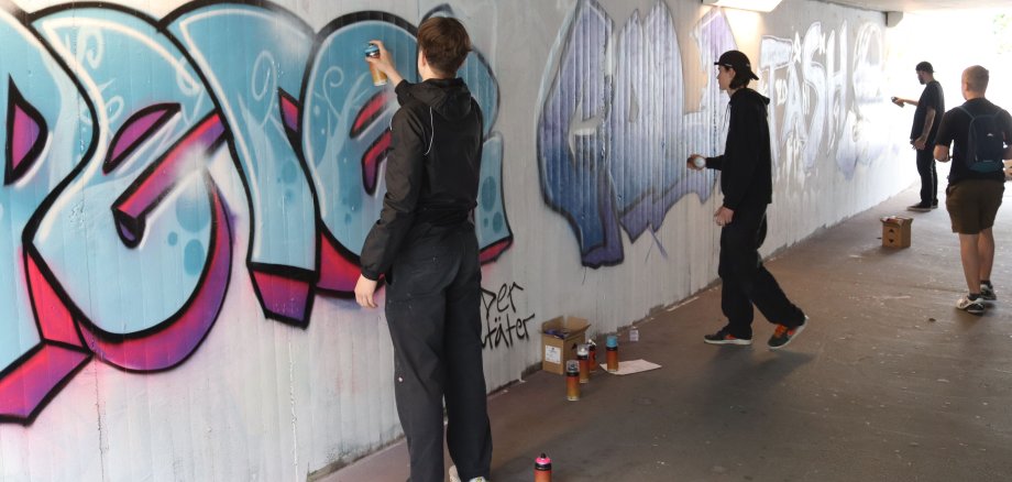 Foto: Mit Graffiti-Kunst verschönerten Jugendliche die Unterführung Wilhelmstraße/Mühlenstraße.