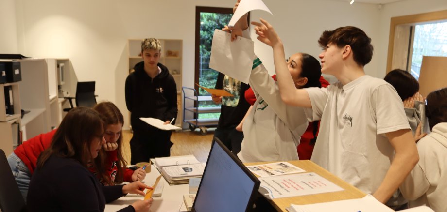 Foto oben: Mit Archivmaterial über die Familien Schubach und Gottlieb versorgte Franziska Blum-Gabelmann Schülerinnen und Schüler der IGS Sophie Sondhelm.