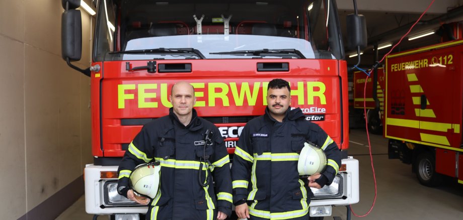 Foto: Feuerwehrmann Mustafa Muafak Abdullah, genannt „Musti“, und sein Mentor Alexander Jodeleit. Foto: Hansjörg Rehbein