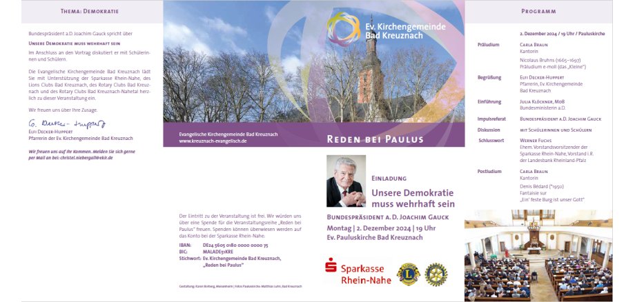 Gemeinsame Pressemitteilung der Stadt Bad Kreuznach und der Evangelischen Kirchengemeinde Bad KreuznachBild: Flyer (Ausschnitt)