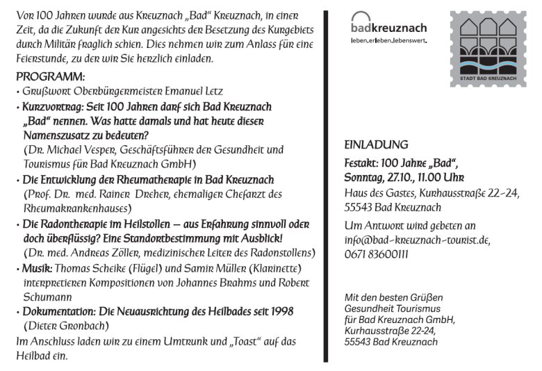 Bilder: Einladungskarte "Feierstunde 100 Jahre ,Bad'"