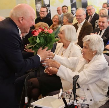 In der Geburtstagsrunde zeigt sie stolz ein Dankschreiben von Konrad Adenauer. Dem hatte sie bei dessen Besuch in Bad Kreuznach anlässlich seines Treffens mit Charles de Gaulle im Kurhaus am 26. November 1958 gelbe Rosen geschenkt. 55 Jahre später machte sie bei dem Besuch des Adenauer-Enkels, der ebenfalls Konrad heißt, wieder Rosen zum Geschenk.