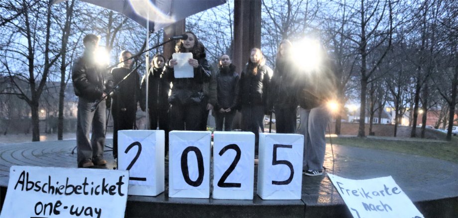 Beklemmende Parallelen zwischen der Zeit des Nationalsozialismus und der Gegenwart stellten Schülerinnen und Schüler der IGS Sophie Sondhelm her. Von der „Freikarten nach Palästina"-Aktion der Nazis im August 1933 bis zum „Abschiebeticket“ 2025. Gemeint ist die umstrittene Wahlkampfkampagne der AfD Karlsruhe diese Tickets an Flüchtlinge zu verteilen. Die Kripo Karlsruhe ermittelt wegen Volksverhetzung.