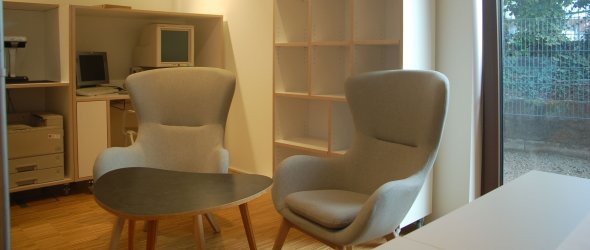 Wenn Sie uns besuchen möchten und unsere Dienste in Anspruch nehmen, ist dies vorerst nur mittwochs und freitags möglich. Im Erdgeschoss haben wir für Sie einen 140 Quadratmeter großen Aufenthaltsbereich mit bis zu acht Arbeitsplätzen (inklusive einen PC-Arbeitsplatz), der durch die großen Panoramafenster mit viel Licht für eine angenehme Atmosphäre sorgt. Unser Haus verfügt über schnelles und kostenfreies "NaheNet WLAN".
