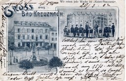 Die Foto- und Postkartensammlung bietet interessante Einblicke in die Geschichte der Stadt Bad Kreuznach, Zu sehen ist oben der Bismarckplatz (heute Kornmarkt) mit dem Wochenmarkt.