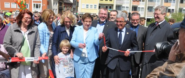 Oberbürgermeisterin Dr. Heike Kaster-Meurer mit Innenminister Roger Lewentz bei der Einweihung des neugestalteten Kornmarktes.