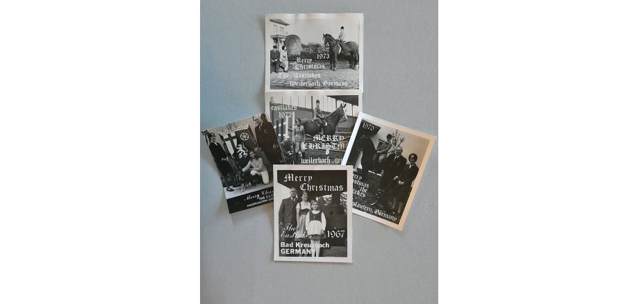 Bei den hier abgebildeten Weihnachtskarten handelt es sich um Weihnachtsgrüße die von der in Deutschland stationierten amerikanischen Familie Eastlake an den Bad Kreuznacher Redakteur Richard Walter und dessen Frau Sigrid im Zeitraum von 1967 bis 1973 geschickt wurden. Kennengelernt hatten sich die Familien in Bad Kreuznach. Hier befand sich 1967 eine US-Standortkommandatur und Donald E. Eastlake jr. hatte zu diesem Zeitpunkt den Posten des Distriktkommandanten inne. Der Kontakt zwischen den Familien entwickelte sich über die Arbeit der Männer und intensivierte sich zusätzlich über Kontakte der Frauen z.B. in der German-American Ladies Group. Die Familien teilten das gemeinsame Interesse an der Fastnacht und dem Bad Kreuznacher Jahrmarkt. Mit der Einrichtung des Rheinland-Pfalz-Support-Distrikts in Kaiserslautern verließ Colonel Donald E. Eastlake Bad Kreuznach. Der Kontakt zwischen Richard und Sigrid Walter und ihm, seiner Frau Zoe und Tochter Pippa blieb über den Militärdienst Eastlakes hinaus bestehen.