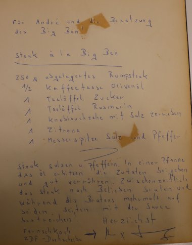 Für den „netten Abend im Big Ben“ und mit den „besten Grüßen bis zum nächsten Mal“, bedankte sich der Sänger und Musikkomponist Peter Maffay am 27. Februar 1971. Mit seiner legendären Hit-Zeile „Bin i Radi Bin i König“ grüßte der serbische Spaßvogel und Klasse-Torhüter von 1860 München, Petar Radenković, am 28.10. 1972 aus dem Big Ben. Der Fernsehkoch der ZDF-Drehscheibe, Max Inzinger, hat nicht nur seine Autogrammkarte eingeklebt, sondern auch ein Rezept für „Rumpsteak á la Big Ben“ hinterlassen. In den goldenen 1970er-Jahren waren auch der damalige Eintracht-Präsident Elmar Pieroth und die Fußballer häufig Gäste im Big Ben. Dort wurden Meisterschaften und Aufstiege gefeiert.
