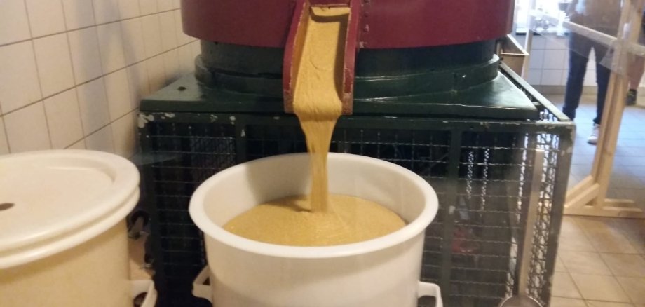 Foto: Rund 400 Kilo Senf produziert die alte Mühle in drei bis vier Stunden. Foto: Heike Rehbein