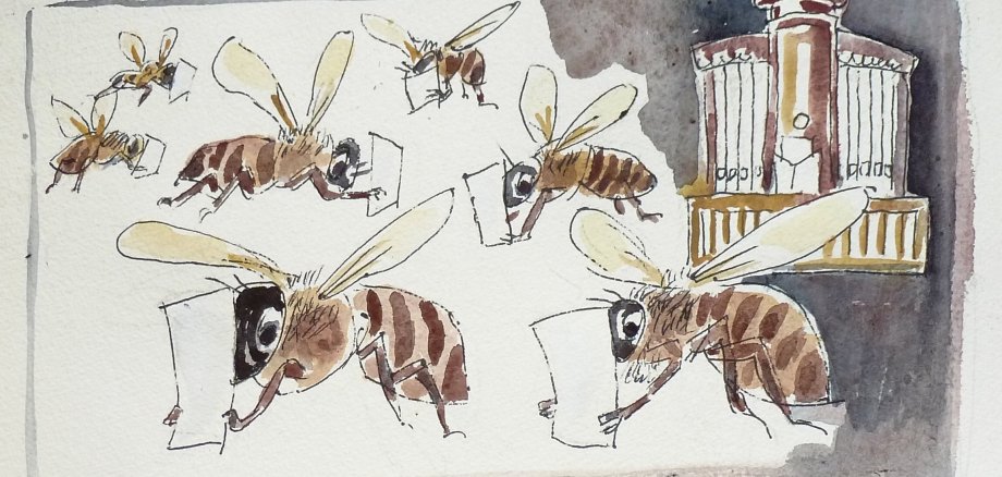 In den Gottesdiensten der Johanneskirche sitzen Besucherinnen und Besucher mit und ohne Gesichtsmaske auf dem mit Sicherheitsabstand exakt durchgeplanten Kirchengestühl, und wenn es das Programm erforderlich macht, dann summen sie. Ich war dabei und habe nach Handdesinfektion und Adressenangabe Texte und Noten in gedruckter Form erhalten, nicht zum Mitsingen, sondern zur Information. Den Mundschutz durfte ich, sobald ich meinen Platz eingenommen hatte, vorübergehend abnehmen. „Nicht singen nur mitsummen“, schärfte uns der Pfarrer ein. Die Musik, sobald sie erforderlich war, kam instrumental von oben, nämlich aus dem Bereich der Orgel plus zwei geschulter Stimmen auf der Empore. Zwischen den Kirchenbänken selbst schwebte nur ein sanftes Vibrieren, ähnlich wie bei einem freundlich gestimmten, aber ausgebremsten Bienenschwarm. Das war das Summen der Gemeinde.