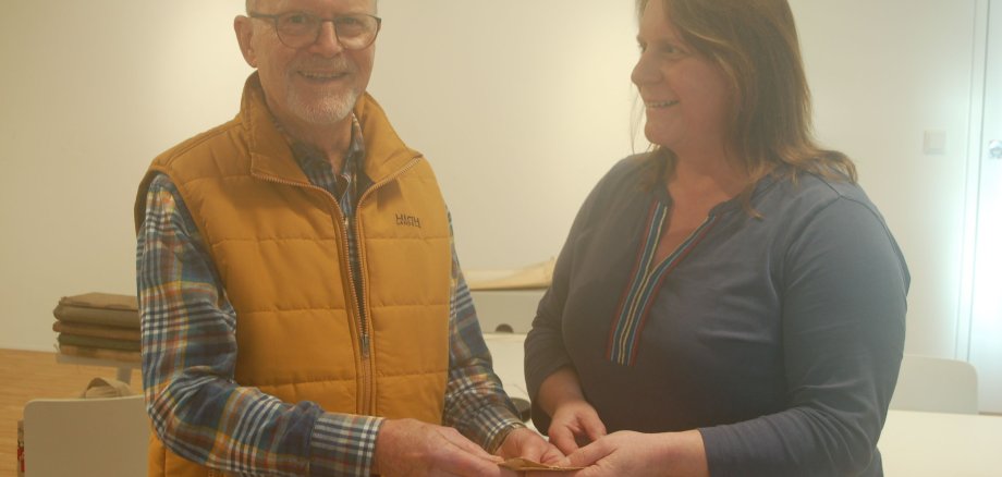 Den Text und Postkarte und Auszüge aus dem Brief, den Anna Hellwig an Else Kirschner am 18, Januar 1945 schrieb, verlas Oswald Kirschner bei einem Gedenkgottesdienst zum 75, Jahrestag des Kriegsendes. Beide Dokumente – Brief und Postkarte - schenkte er nun dem Stadtarchiv, wofür sich Stadtarchivarin Franziska Blum-Gabelmann herzlich bedankte. Es sei von großer Bedeutung für die Stadtgeschichte, Zeugnisse jener Zeit aus der Bürgerschaft zu bekommen. Das gilt besonders von Fotos, Tagebucheintragungen, Brief, Postkarten etc.