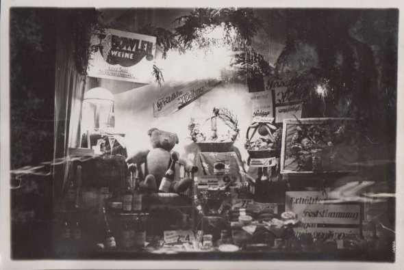 Meine ersten Erinnerungen an die vorweihnachtlichen Schaufensterbummel liegen tatsächlich Ende der 60er Jahre. In einer Zeit, als es Ende August noch keine Marzipankartoffeln, Spekulatius oder Lebkuchen zu kaufen gab, waren die buntbeleuchteten Auslagen der Kaufhäuser ein regelrechter Hingucker und eine große Vorfreude auf die kommenden Festtage. Prallgefüllte Vitrinen der Einkaufshäuser zeigten wunderschöne Dinge, die den Alltag „ein kleines bisschen“ angenehmer gestalten sollten. Egal ob ein Pelzmantel für die Dame, Schmuck in Hülle und Fülle oder Getränke und Rauchartikel für den Herrn von Welt, für jede Preisklasse war etwas dabei. Nicht zu kurz durften auch die sogenannten „Gebrauchsgeschenke“ kommen, Mützen, Handschuhe, Pullover, oft selbstgestrickt von Tanten und Omas oder auch die besonderen Haushaltsartikel wie Staubsauger oder Dampfdrucktopf. Aber da gab es ja auch noch die anderen Geschenke: die, für die man sich die Nasen am Schaufenster plattdrückte um ja jedes noch so kleine Detail zu sehen: die Rede ist von Spielwaren! Egal, ob sich in der Auslage eine Carrera-Bahn durch die Rennstrecke drehte, die Märklin-Eisenbahn Passagiere zusteigen lies, Puppen aller Art durch die Schaufenstergestaltung „turnten“, der HINGUCKER für mich sind jedoch seit vielen Jahren die Fenster der Firma Steiff. Da gab es einen Teddybären, der mit Flügeln auf einer Wolke stand und Trompete spielte, kleine Meerschweinchen, die sich unter einer Krippe versteckten. Osterhasen, die mit rotem Pelzmantel bekleidet waren und in großen Säcken kleine Geschenke verstauten. Später kam dann auch immer mehr Bewegung in das Gesamtkunstwerk, die Figuren begannen „zu leben“, mit kleinen Motoren wurden Schlitten gezogen, winzige Enten konnten auf einen See zulaufen, Frau Holle schüttelte die Kissen aus. Auch heute nach mehr als 50 Jahren sehe ich mir immer noch gerne die Schaufenster der Firma Steiff an, auch wenn ich schon lange nicht mehr zur eigentlichen Zielgruppe gehöre. Übrigens: meinen ersten eigenen Steiff-Bären habe ich tatsächlich erst seit drei Jahren…