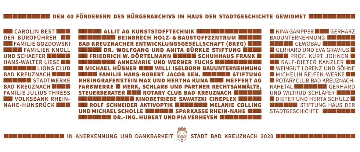 Ihr ehrenamtliches Engagement könnte einen wesentlichen Beitrag dazu leisten, die Historie des öffentlichen Lebens in Bad Kreuznach in all seiner Vielfalt für die nächsten Generationen in unserer Stadt zu erhalten und zu sichern.