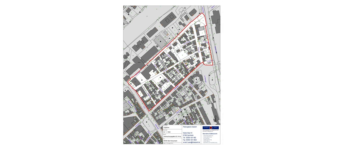 Mit der Durchführung der vorbereitenden Untersuchungen hat die Stadt das Planungsbüro Deubert & Partner, Quirnheim beauftragt.