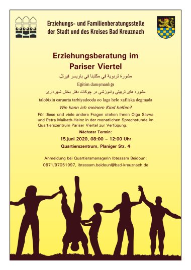 Weitere Informationen unter 0671-970519971 oder per E-Mail: ibtessam.beidoun@bad-kreuznach.de