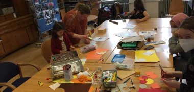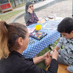 Basteln und Malen für die Kinder und für alle ein kross gegrilltes Würstchen mit heißem Tee.