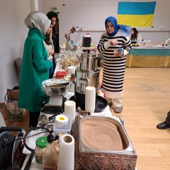 Das internationale Sprachcafé ermöglicht Menschen unterschiedlicher Herkunftsländer Kontakt aufzunehmen, einander kennenzulernen und miteinander alltägliche Sprachsituationen zu üben.