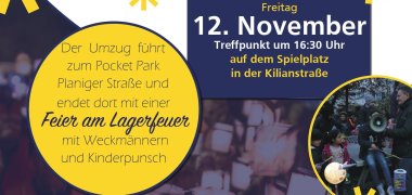 Der Martinsumzug startete auf dem Spielplatz in der Kilianstraße und bahnte sich illuminiert von vielen Laternen und musikalisch begleitet von den „Musikfreunden Winzenheim” seinen Weg zum Pocket Park.