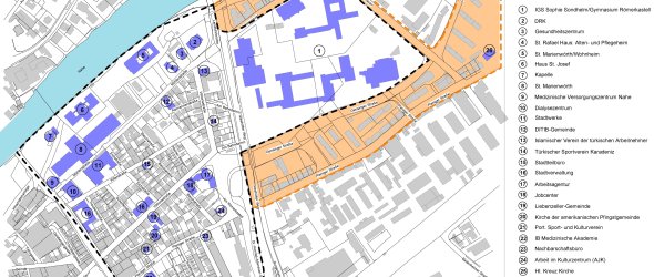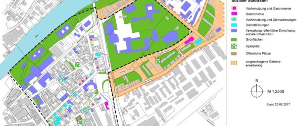 Mit der Evaluation 2017 wurde eine Erweiterung der Gebietsabgrenzung sowohl inhaltlich, als auch aus Gründen der Zweckmäßigkeit empfohlen. Das geeignete Erweiterungsgebiet umfasst circa 8 Hektar und ergänzt das bisherige Fördergebiet im Nordosten, sodass das Schulumfeld und öffentliche Bereiche des Naheufers ebenso zum Programmgebiet gehören wie weitere Abschnitte der verkehrsreichen Straßen Planiger Straße und Gensinger Straße.